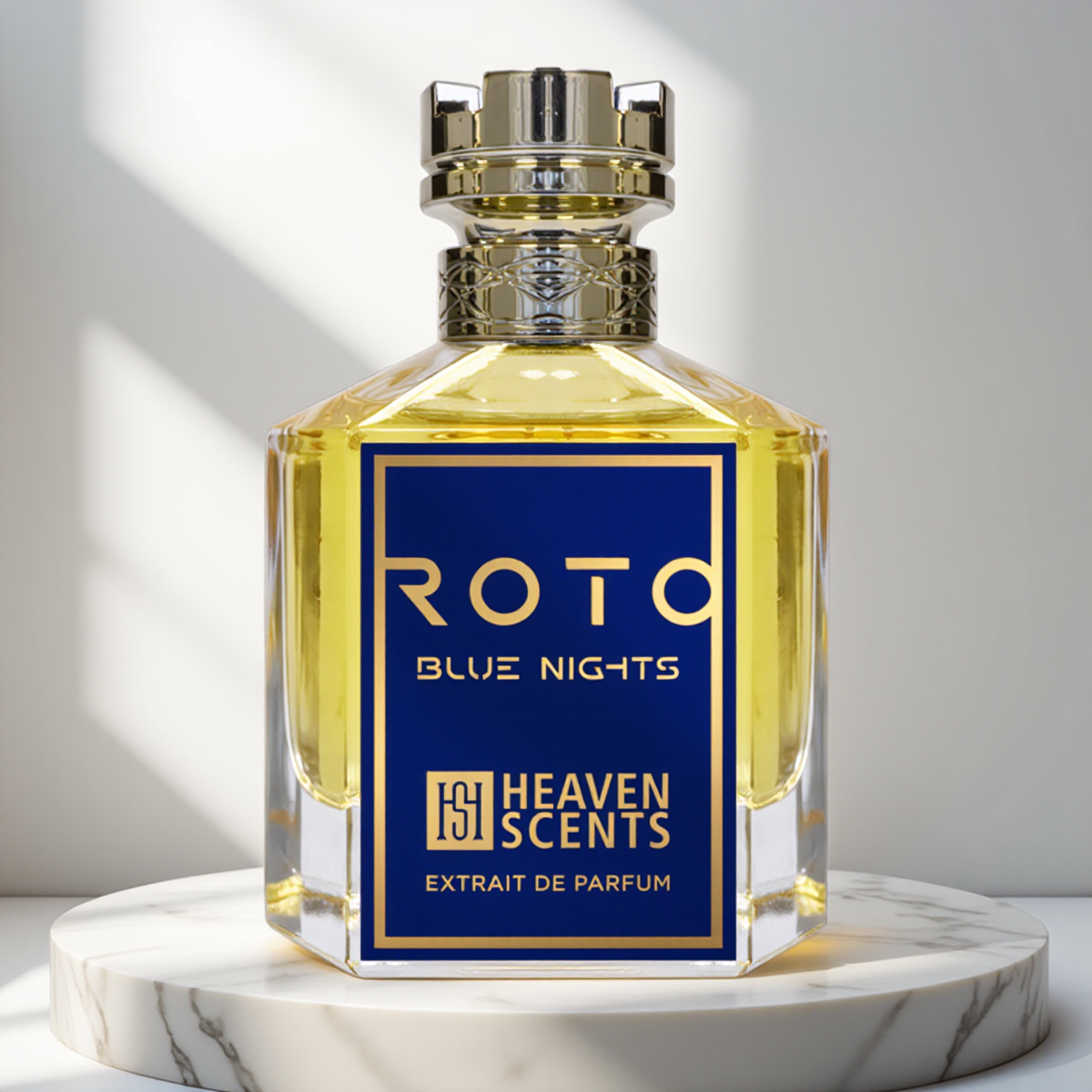 روتو بلو نايتس من هيفن سنتس هو عطر حمضي عطرى للرجال والنساء، حيث يجمع بين الجريب فروت والزنجبيل في قلبه، ويترك أثرًا دافئًا مع أمبروكسان والمسك.
