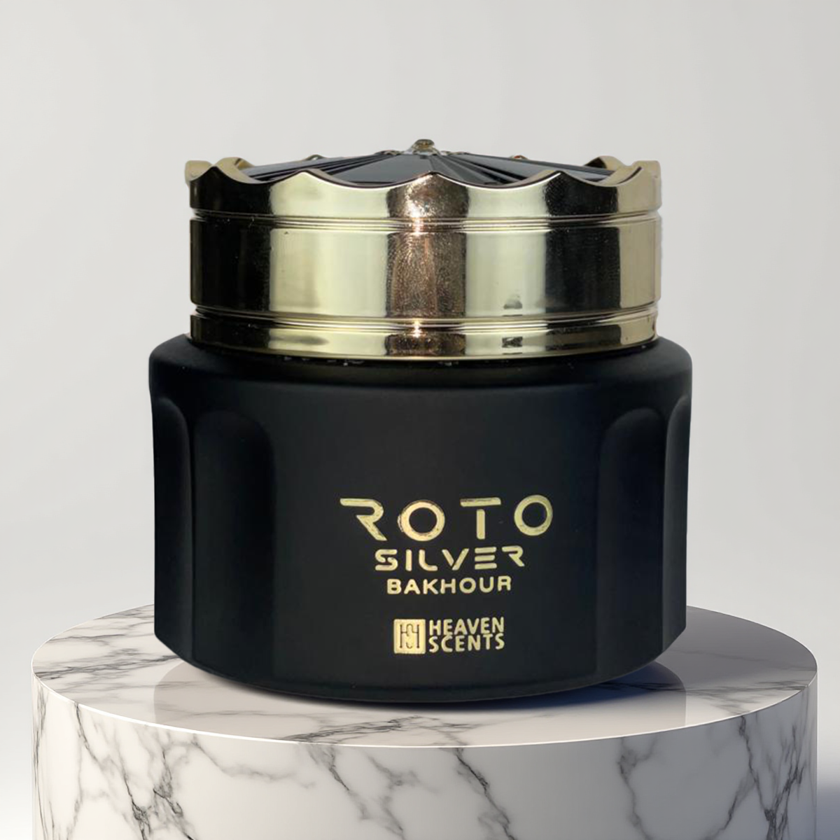 يبدأ بخور روتو سيلفر بنفحات فواكه منعشة تتخللها زهور الياسمين وزهرة البرتقال، مما يضيف لمسة من الأنوثة. كما تمتزج قاعدة باتشولي والعنبر لتترك انطباعًا دافئًا وجذابًا.